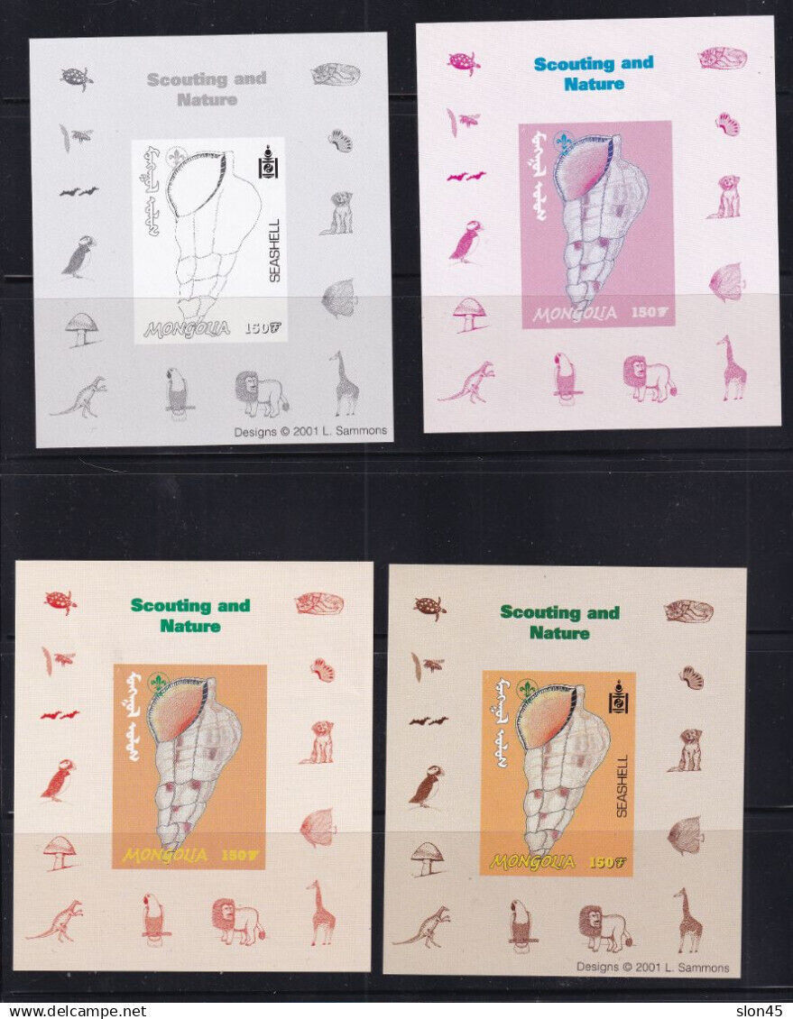 Mongolia 2001 Seashell Imperf Progressive trial colors 16570