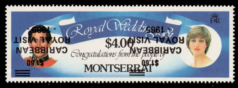 $4.00 Prince Charles and Princess Diana Royal Wedding Incorrectly Overprinted $1.60 Caribbean Royal Visit 1985 Overprint Inverted Printers Waste. Mint never hinged.