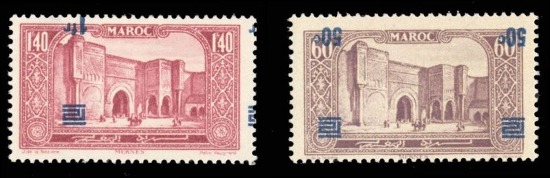 Morocco 122-123a, $300, 1931 50c and 1fr surcharges inverted, lightly hinged