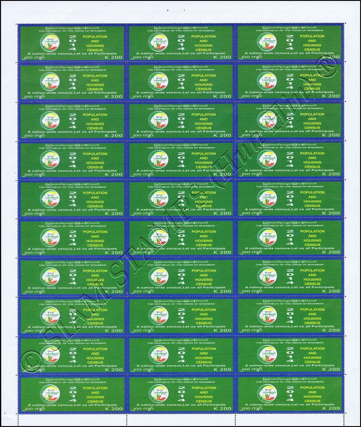 Myanmar Census 2014 (I) -SHEET (II)- (MNH)