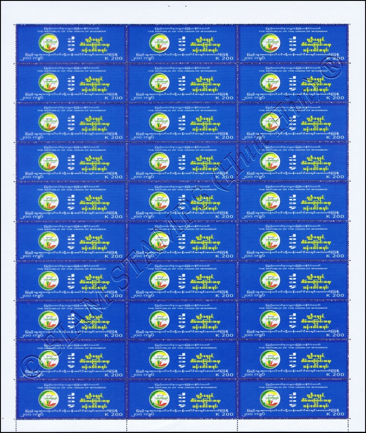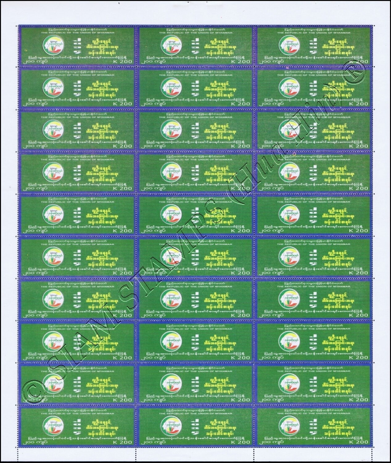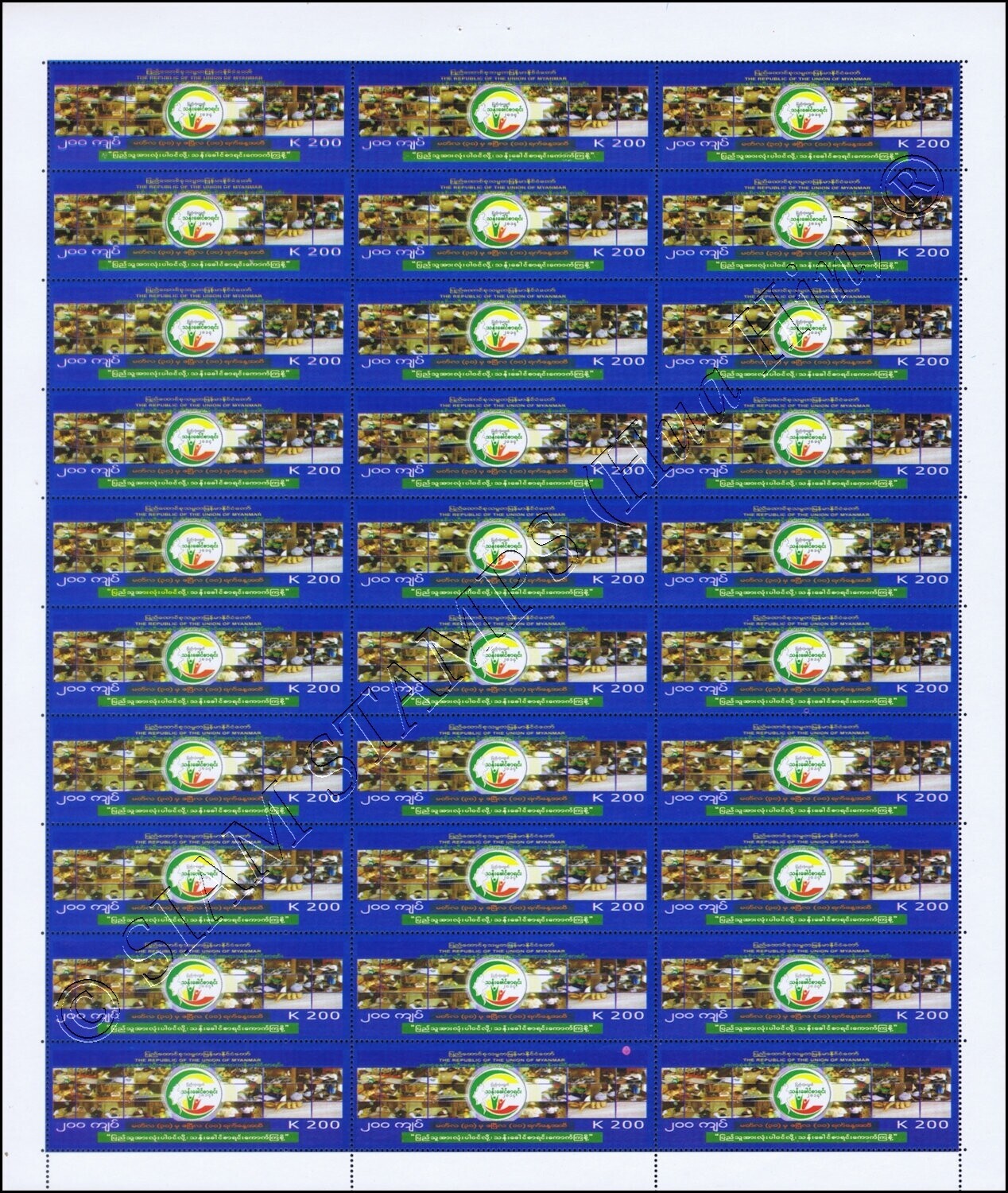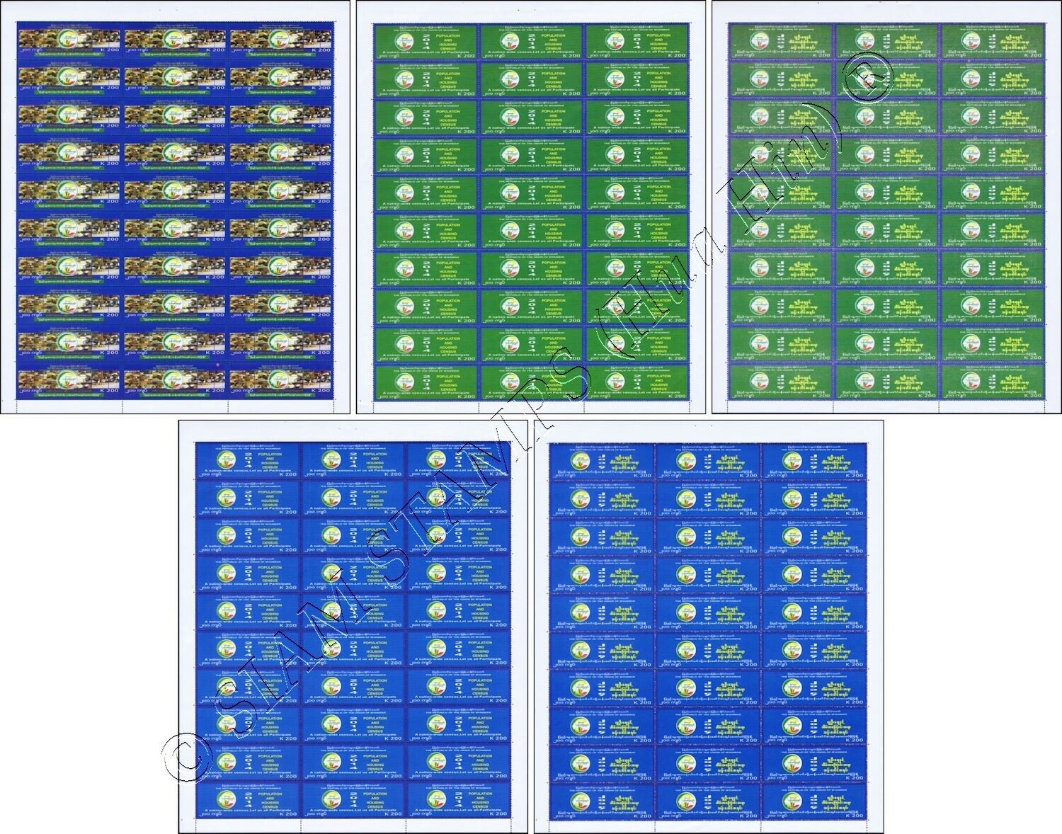 Grade: XF (Extremely Fine) Myanmar Census 2014 (I) -SHEET (II)- (MNH) ARTICLE DESCRIPTION: MiNo. 421 - 425 BO(I) MyanmarOdr. (10 x 3); perf. K 14 1/4:14Sheet, Issue date: 24/02/2014Picture descriptions:kd) Logo and ... Read More
