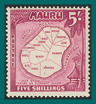 5s stamp from definitive issue showing map of Nauru.The stamp has two light hinge marks and is shown in the scan.