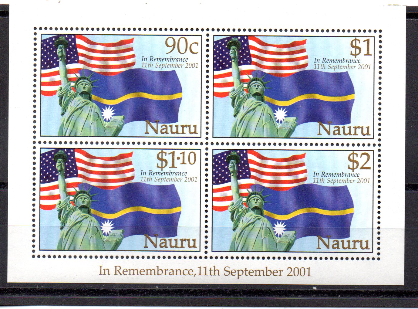9/11, sheetlet of four, mint, never hinged, 2017 catalog 8.75