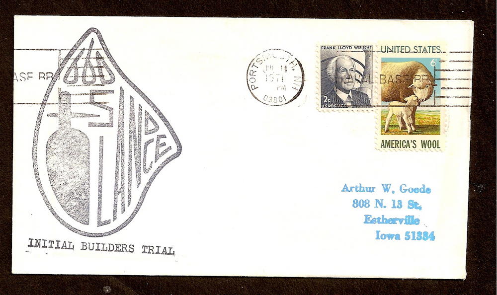 NAVAL COVER - U.S.S. LANCE - INITIAL BUILDERS TRIAL