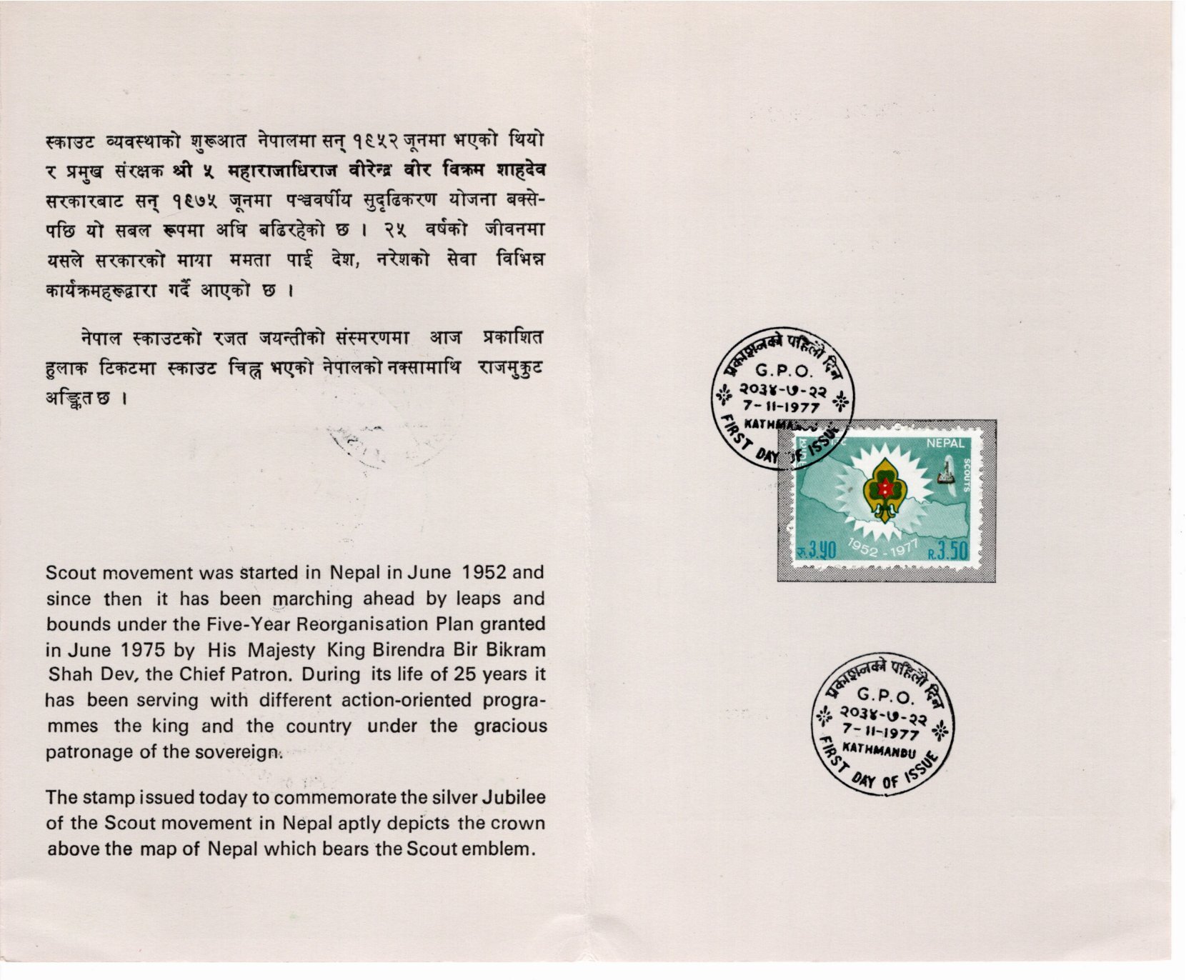 Nepal 1977 Sc 336 FD souvenir folder