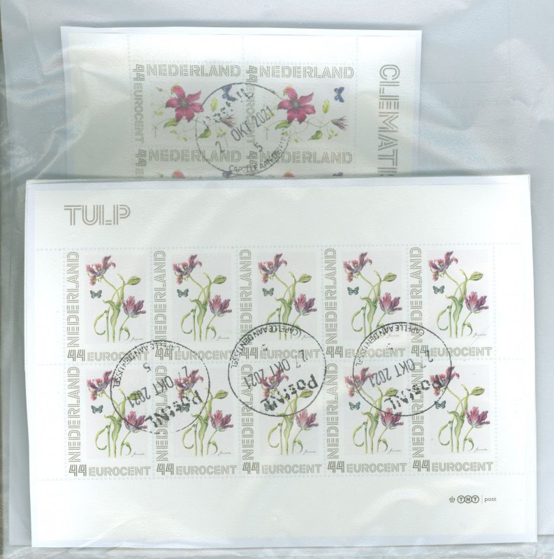 2008 personalized stamps, three sheets of 10 stamps each, depicting flowers: tulip, clematis, rose, on piece APS Stamp Id: 501614105 APS Seller Id: 673294 Hinge Type: Not Specified