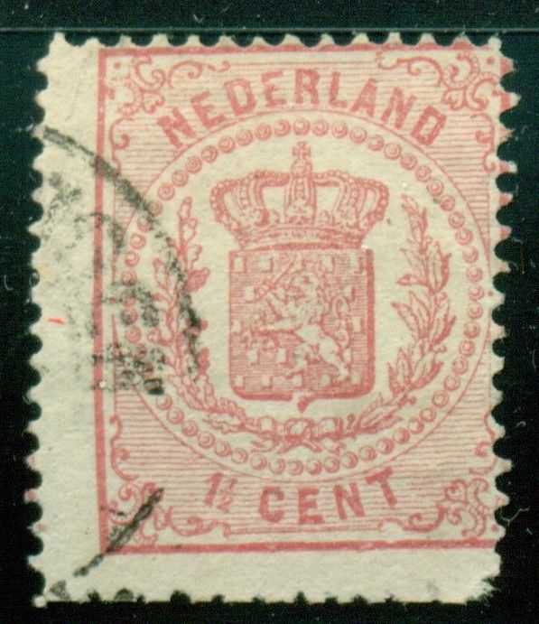 Netherlands: 1869-71 SC. 20 - 1 1/2 CENT; BOTTOM MISPERFEDThis item consists of sc. 20 in used condition issued by the netherlands in 1869-71; rounded corner and bottom misperfed.