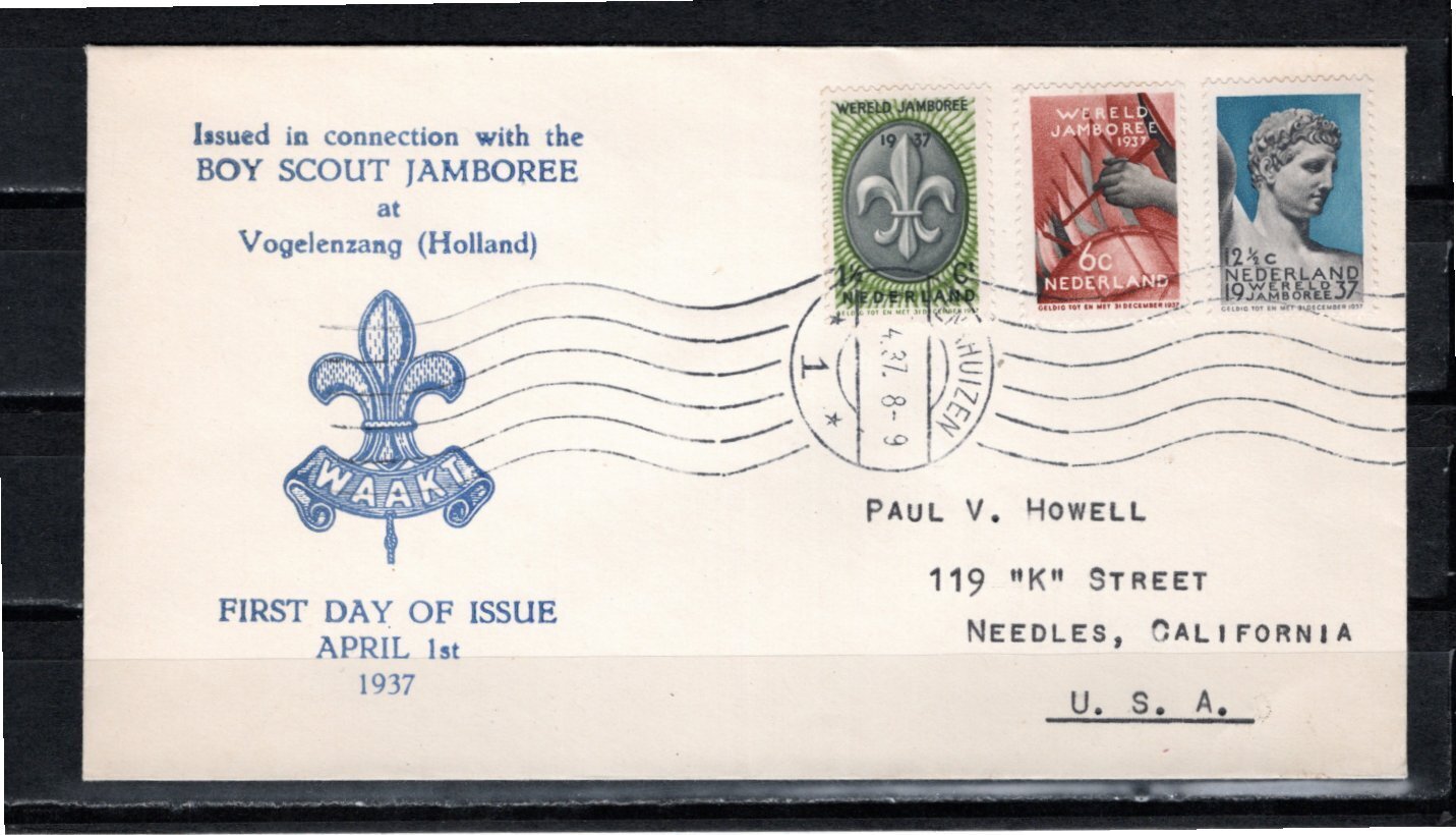 Netherlands 1937 Sc 206-8 FDC