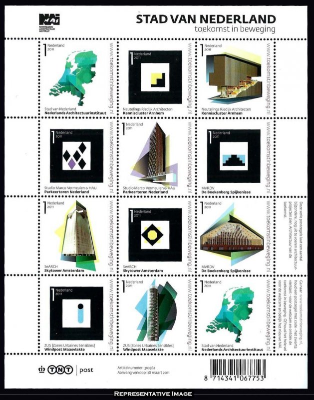 1G [46c], 1G [46c], 1G [46g], 1G [46g], 1G [46c], 1G [46c], 1G [46c], 1G [46c], 1G [46c], 1G [46c], 1G [46c] and 1G [46c] City of the Netherlands Se-tenant Sheet of twelve. Mint never hinged.