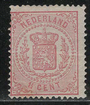 NETHERLANDS Scott # 20;mint nh, perf 13.25, light crease at bottom and top right, very light color spot on gum;