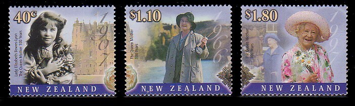 New Zealand, Scott #1663-1665, 2000 Queen Mother's, 100th Birthday issues in Mint Never Hinged condition.Scott 2026 Catalogue Value $4.35