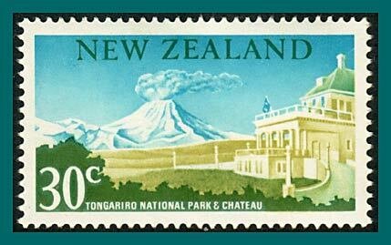 (SG 859; Sc 399) Single definitive stamp showing Tongariro National Park and Chateau.The stamp has a light hinge mark and is shown in the scan.