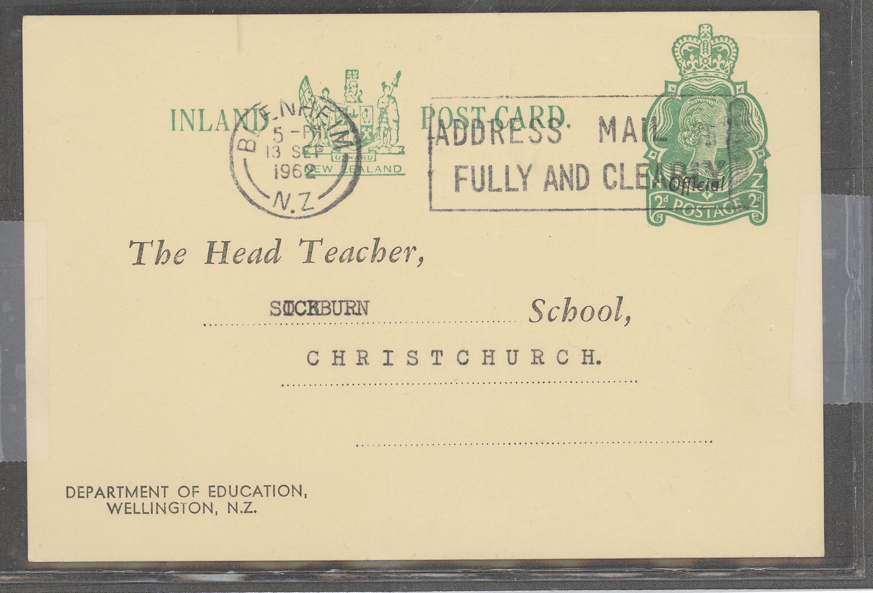 New Zealand 1962 QE II 2c Education Postal Card