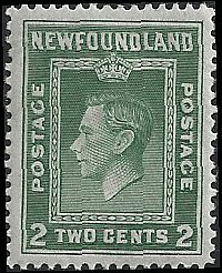 1941-1944 #254 King George VI 2c deep green Mint HingedSeller Information