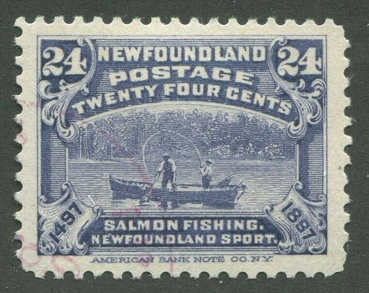 Newfoundland Discovery of Newfoundland #71 Salmon Fishing 24¢ grey violet Used Vf LH Full OG Light Cds Cancel Powered by SixBit's eCommerce Solution