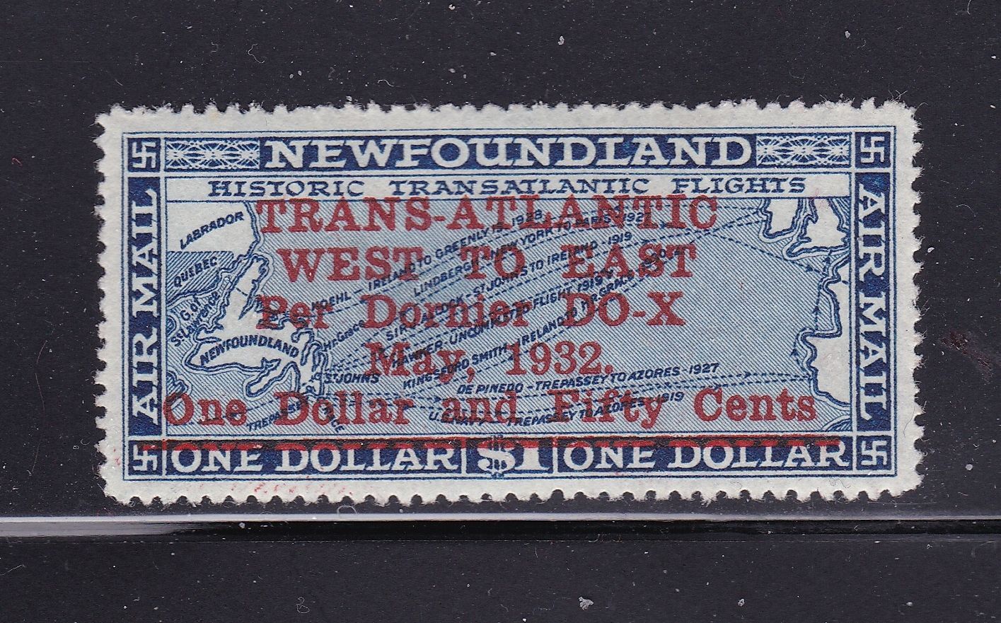 Newfoundland Scott C12,1932 DO-X $1.50 Surcharge,VF, MNH. Scott $400