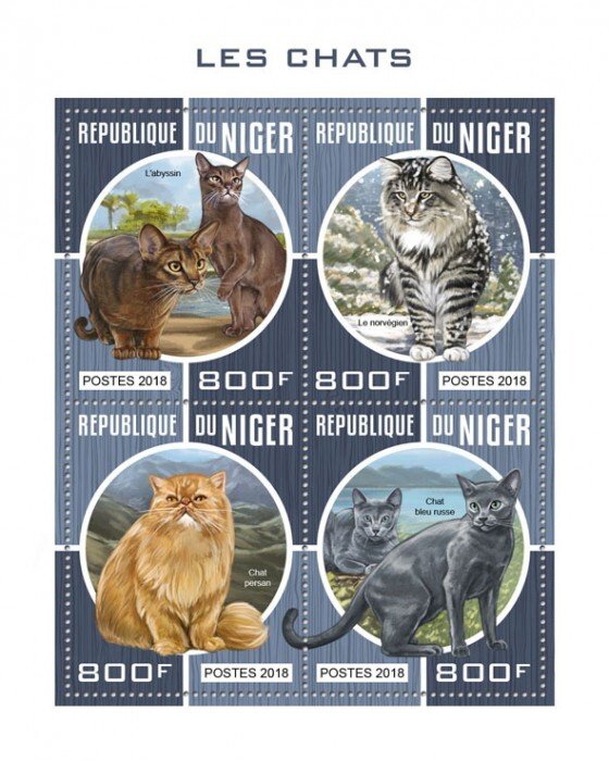 NIGER - 2018 - Cats - Perf 4v Sheet - Mint Never Hinged