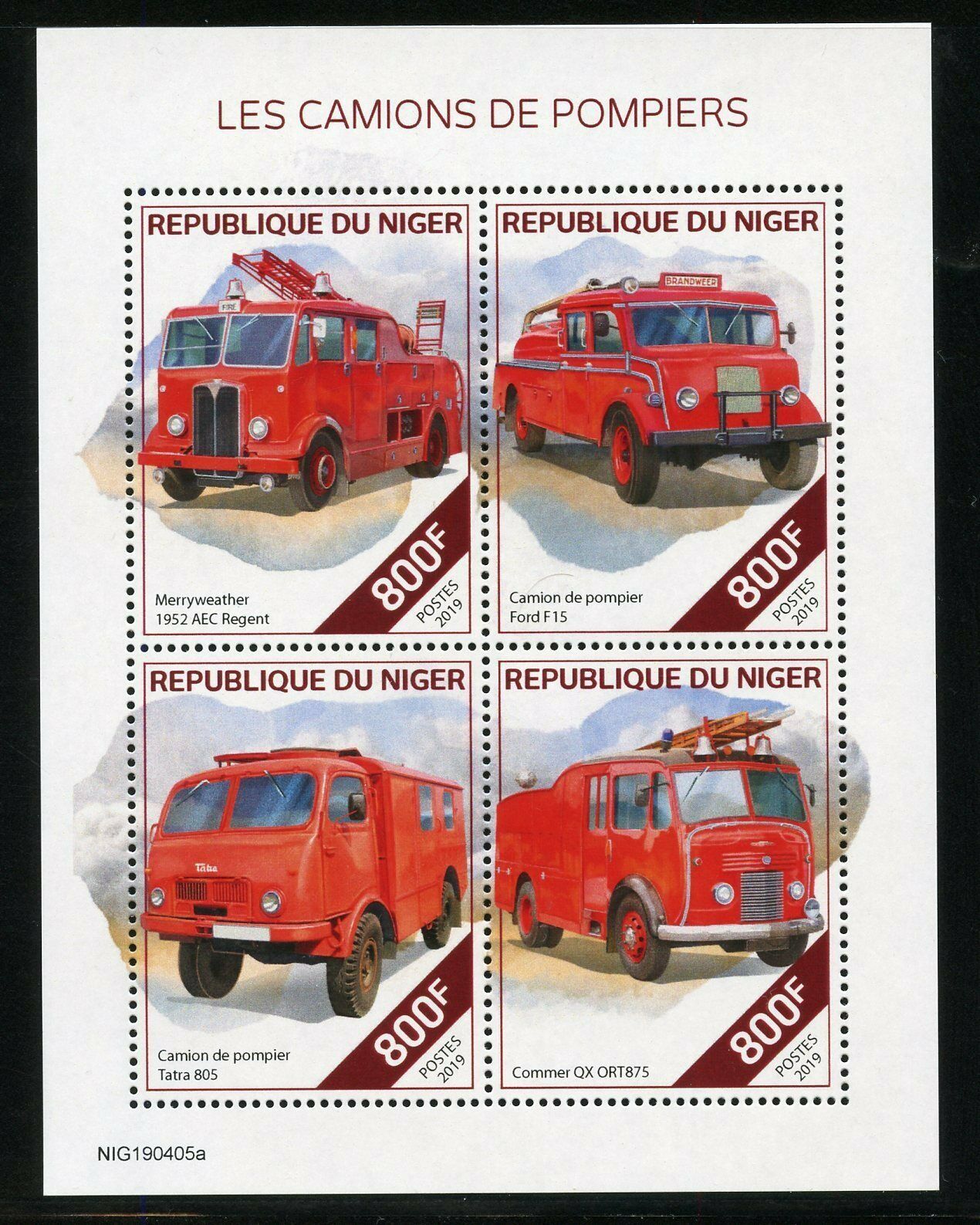 NIGER 2019 FIRE TRUCKS SHEET MINT NEVER HINGED