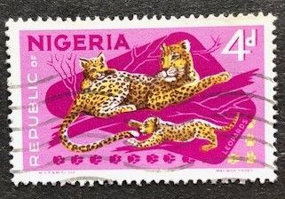 4 p stamp from set, Leopard & cubs, used, catalog: 0.25