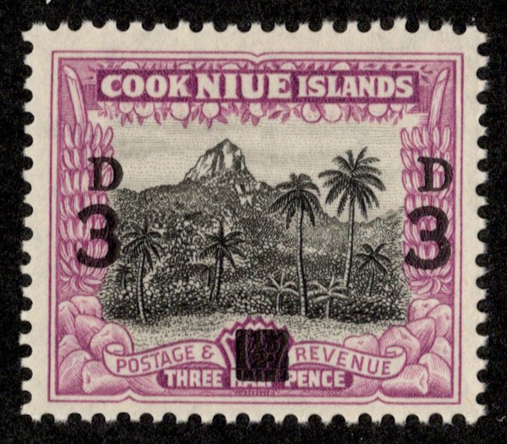1 1/2d Mt. Ikurangi behind Avarua Overprinted 3d. Mint never hinged.
