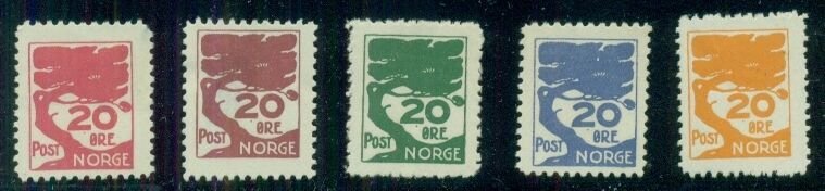 NORWAY 1930's 20ore Tree ESSAYS, 5 diff colors, og, hinged