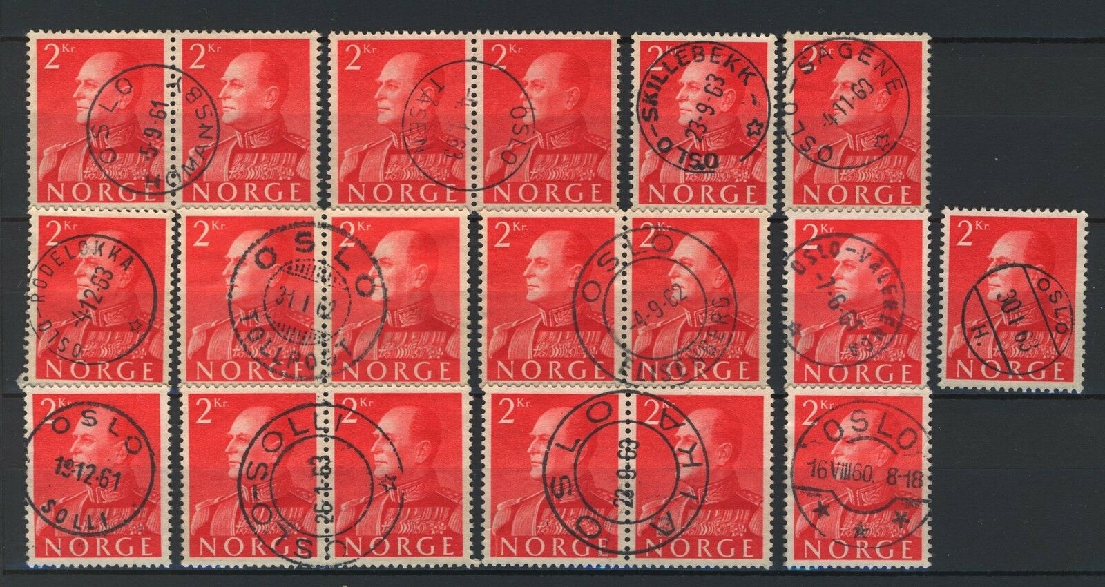 Norway 1959, NK 471 13 different Son Oslo cancelations