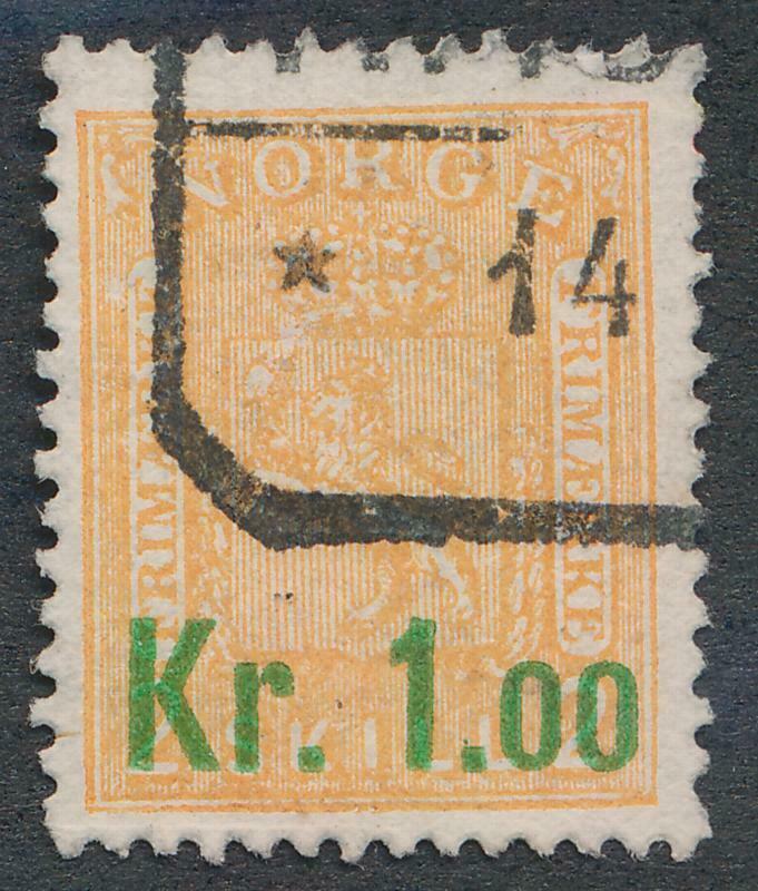 Grade: VF (Very Fine)NORWAY 59 VF, USED 1 KR Another quality product from Randy Scholl Stamp Company. NORWAY 59 VF, USED 1 KR Product # INV-18893 Shipping Costs Shipping costs will be based on the Hip shipping calculation tool. US Buyers USPS 1st Class Package Service with Tracking. Low Flat $3 regardless of size of order. Overseas Buyers Your item will be sent by USPS 1st Class Registered International Mail over $150. On very expensive orders we reserve the right to ship alternate and more secure methods. Buyers agree to this extra cost. International Flat: USPS First Class Mail Intl ($3.00) USPS Registered Mail Service Any orders over $150.00 must be sent by registered mail at a cost of $27.00 due to the loss of items. This will help insure the safe delivery of your stamps.Multiple items shipped together save on shipping costs! Buy lower cost items together. Save with low flat rate shipping. Please wait to be invoiced when you buy multiple items. We accept the following Payment Methods 1) Paypal 2) Credit Cards - Visa, Mastercard, Amex. you can use our secure payment form on our website. All credit cards will be charged in US Dollars. Return Policy If an item is not as described please return it for a full refund, including return postage costs to us. Returning Items must arrive back to us within 30 days to be covered by this policy. To learn more about us Visit our Hip Store Randy Scholl Stamp Company