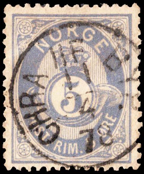 5o Posthorn and Crown San Serif and Shaded Ring. Used.