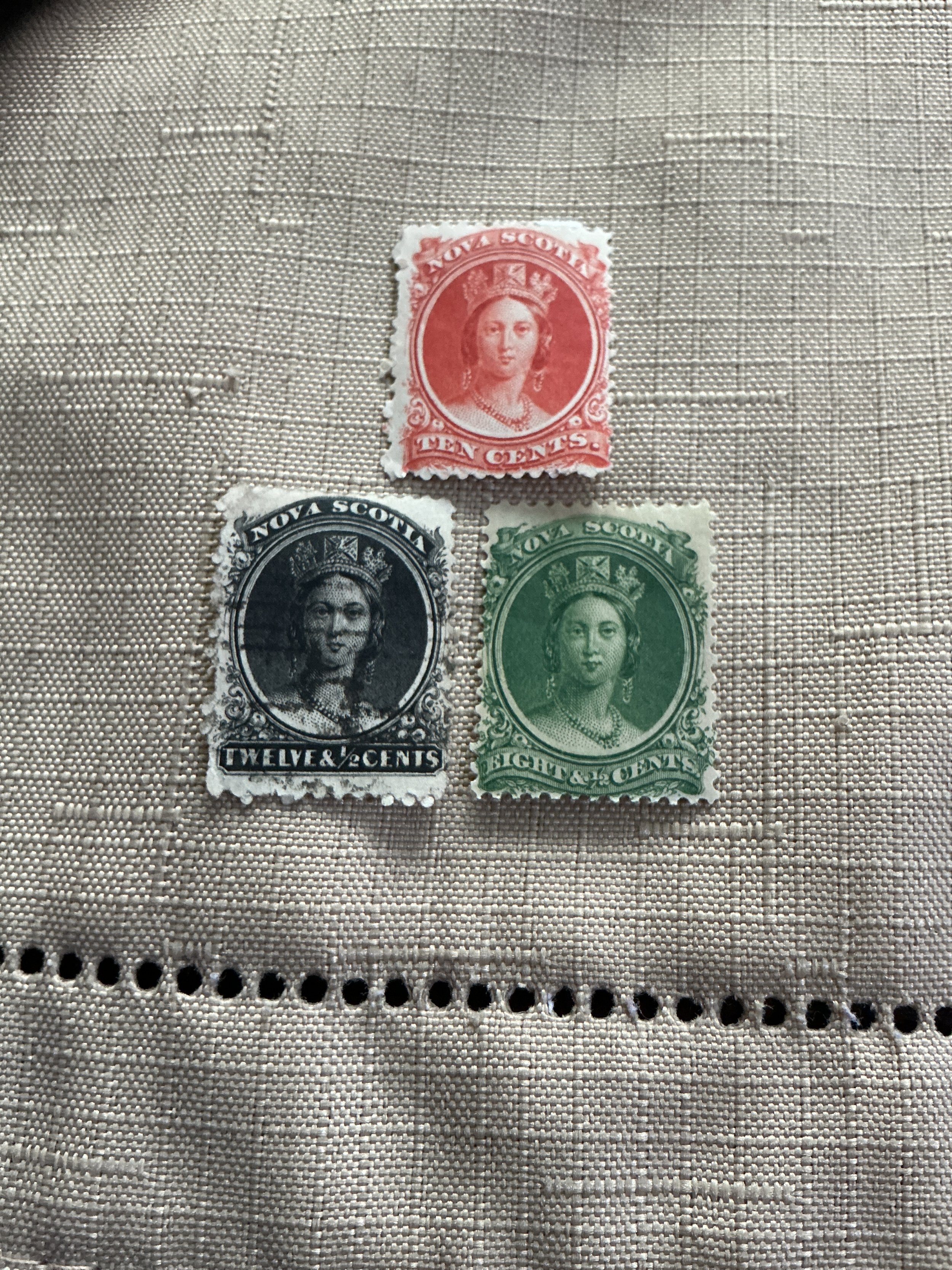 3 very nice stamps from Nova Scotia. 2 are mint and 1 ox vv. The scott catalogue value is $71.50”