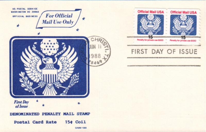 #O138A Official - Eagle first day cover by Gamm Covers. Postmark State: TX City: Corpus Christi Year: 1988 Month: 6 Day: 11