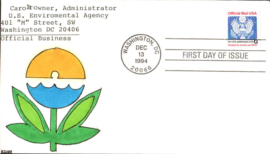 #O152 Official - Eagle first day cover by Kribbs Kovers. There is creasing down through the postmark and the edges are creased. Postmark State: DC City: Washington Year: 1994 Month: 12 Day: 13