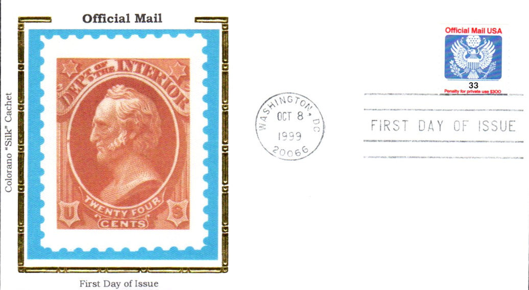 #O157 Official - Eagle Silk first day cover by Colorano. There is creasing below the postmark and Scott number and price are written on the reverse. Postmark State: DC City: Washington Year: 1999 Month: 10 Day: 8Seller Information