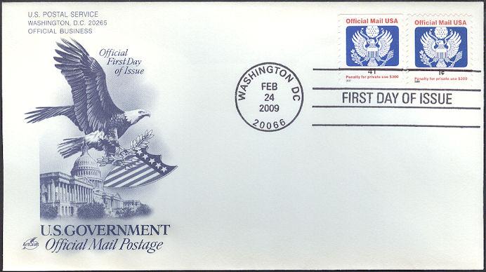 #O163 Official - Eagle first day cover by Artcraft. Postmark State: DC City: Washington Year: 2009 Month: 2 Day: 24
