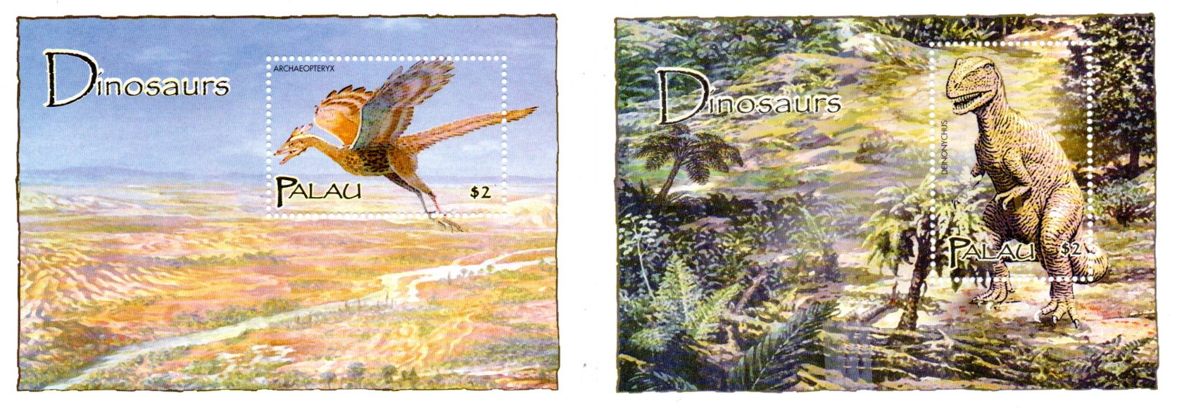 Dinosauers, two ss from set, mint, never hinged, 2020 catalog 8.00