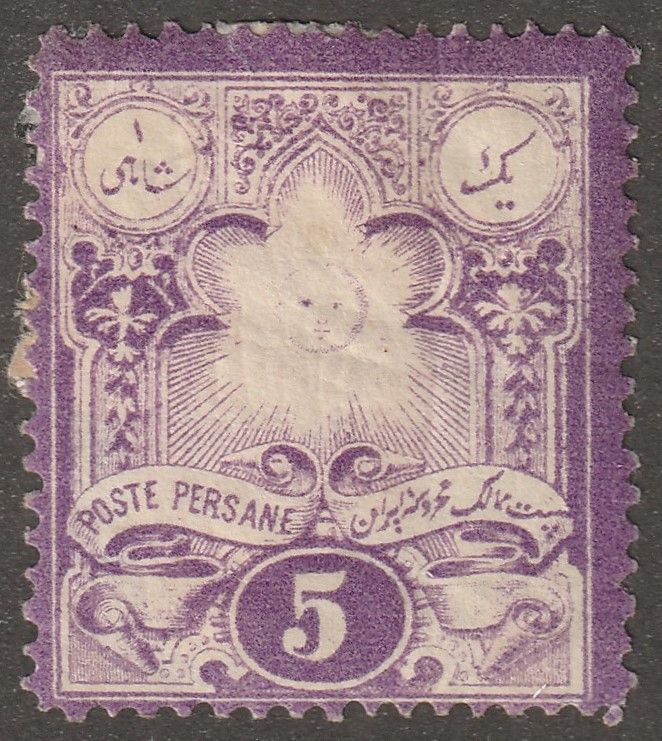 Persia, stamp, scott#47, mint, hinged, 5ch, violet