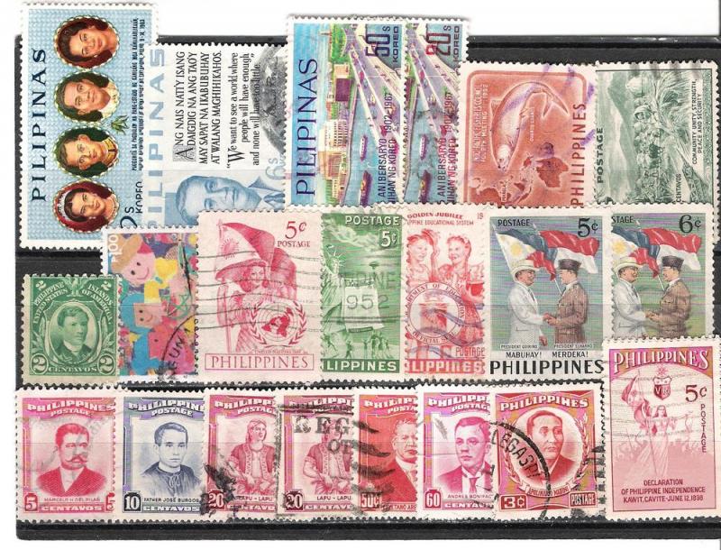 PHILIPPINES 21 all different, all canceled, hinged issues