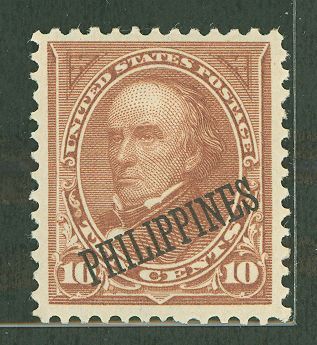 1899 10c Webster type I, brown (US 282C w OP); Dl wmk (strong & distinct); handsome & w-centered(VF); full OG tropical w gloss (shiny & dull); SCV: 35.00APS Stamp Id: 501818158