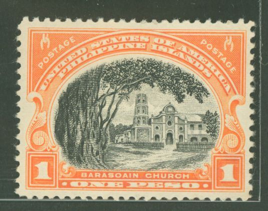 1935 1p Barasoain Church, red-orange & black; awesome color combo! Great margins (VF-XF); glossy gum (OGHR); hard to find as single! APS Stamp Id: 502006190 APS Seller Id: 738268 Hinge Type: HR