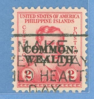 1936 2ct Rizal, rose (#383) w "common/wealth" op (larger font); jumbo margin, sturdy. APS Stamp Id: 501827450 APS Seller Id: 738268 Hinge Type: Not Specified