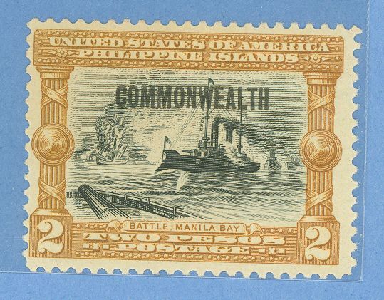 1937 2p Battle of Manila Bay, bister-brn & blk (#394 w "Commonwealth" OP, large); great "eye appeal", decent margins, F/F-VF (Fl Intact); glossy gum (OGLH); SCV: 12.50APS Stamp Id: 501846938