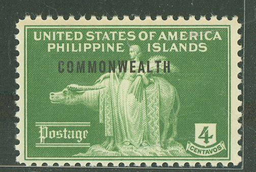 1940 4c Woman & Carabao, yellow Grn (#384 w "Commonwealth' OP, small); beautiful, sound, VF; perfect gum! Pristine PO fresh (OGNH)! SCV:4.75; extremely hard to find as single; Esp. this excellent! APS Stamp Id: 50 ... Read More