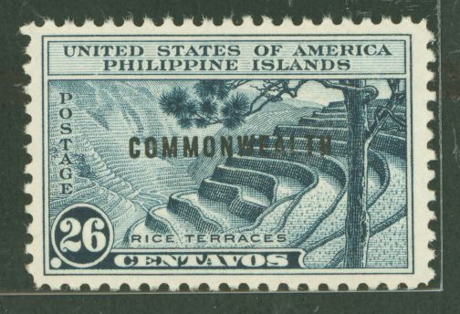 1940 26c Rice Terraces, Indigo(#394 w "Commonwealth" OP, small); prooflike color, contrast, Depth; PO fresh(OGNH Glossy); v. lgt. NGB APS Stamp Id: 501772064 APS Seller Id: 738268 Hinge Type: NH