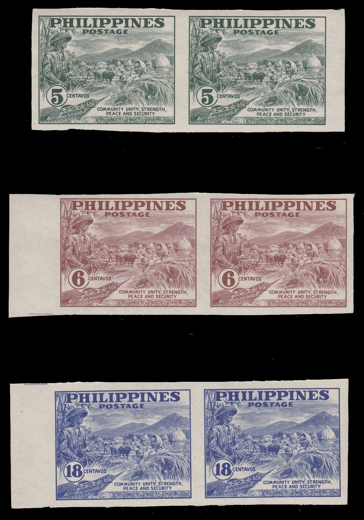 Philippines, Scott #554a-556a, 1951 Peace Fund Campaign Imperf Pairs issues in Mint Never Hinged condition.Scott 2026 Catalogue Value $7.50