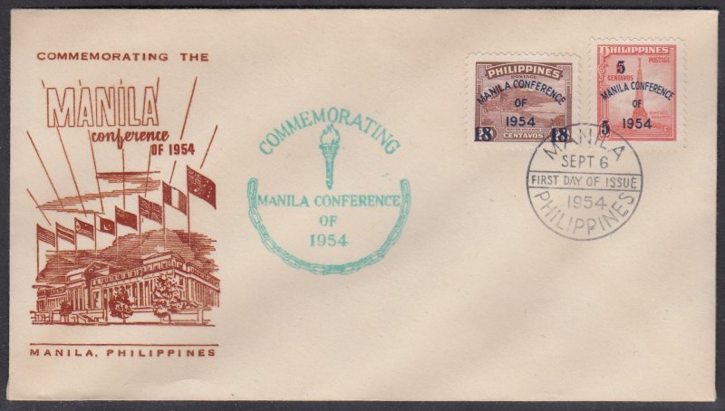 Philippines, Scott #813 & 814, 1947 Issued Overprinted and Surcharged - Manila Conference issues First Day Cover.Please note that I make every attempt to describe any faults that cannot be seen in the scan. If I make an error and you are unhappy with your lot, please let me know and give me a chance to satisfy your requirements.