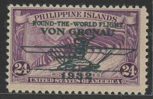 1932 24c Von Gronau, dp violet (#359 w OP); decent margins, sharp tonal contrast, bold OP; glossy gum (OGHR); missing from many collectionsAPS Stamp Id: 501780171