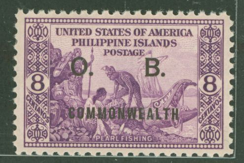 1939 8c Pearl fishing, violet(#436 w "O.B." OP wide); beautiful; pristine PO fresh (OGNH glossy); hard to find as single APS Stamp Id: 501771847 APS Seller Id: 738268 Hinge Type: NH