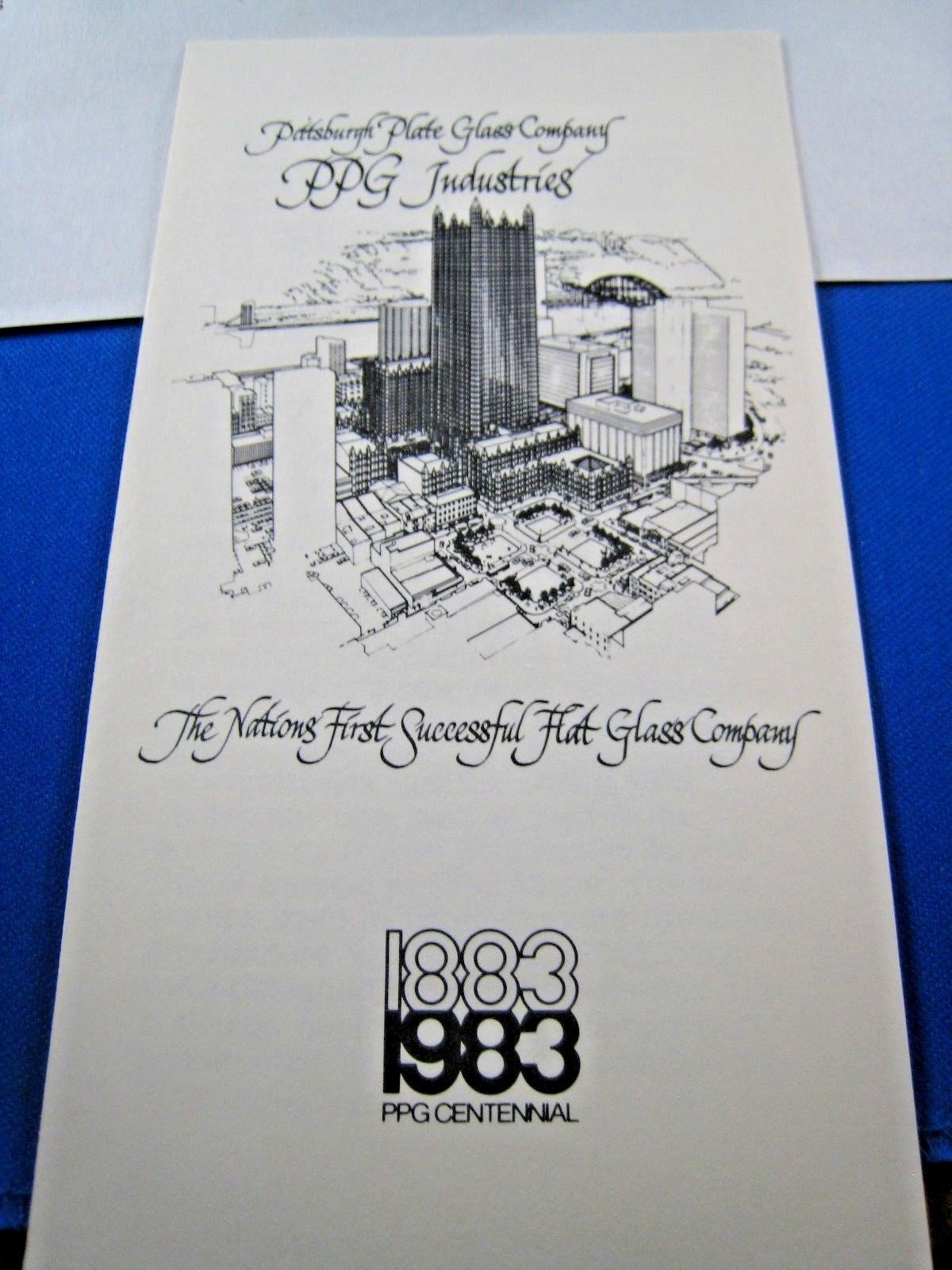Notes: Created by PPG Industries to celebrate their centennial (1883-1983). The covers, with the set of 4 1983 USPS Architecture Stamps, shows their new headquarters building in Pittsburgh, PA. The buildings shown on the stamps all used glass produced by PPG Industries. Each cover has an inserted brochure, as shown in the photos, explaining the history of PPG.