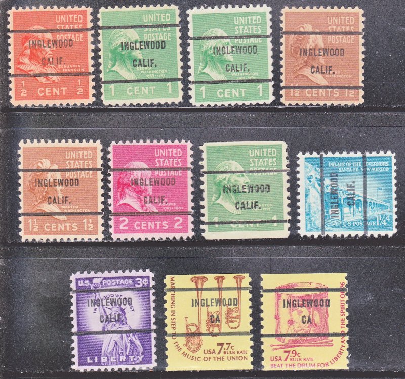 Precancels - Inglewood, CA - 11 Different Bureau Issues