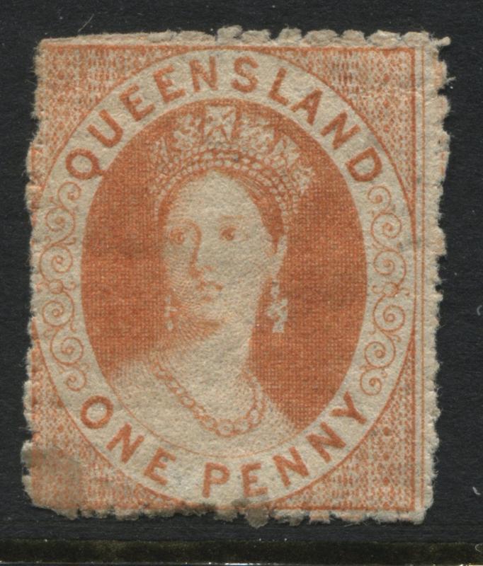 Queensland 1865 1d orange mint o.g. Scott #18 Cat. $120.-Canadian buyers will be charged the appropriate GST or HST.
