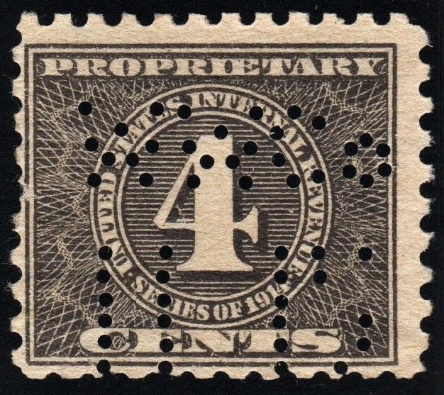 RB58 4¢ Proprietary Stamp (1914) Perfin
